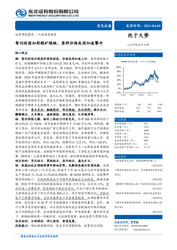 【东北证券】【20210405】智利封国加剧锂矿短缺,原料价格或将加速攀升-16页