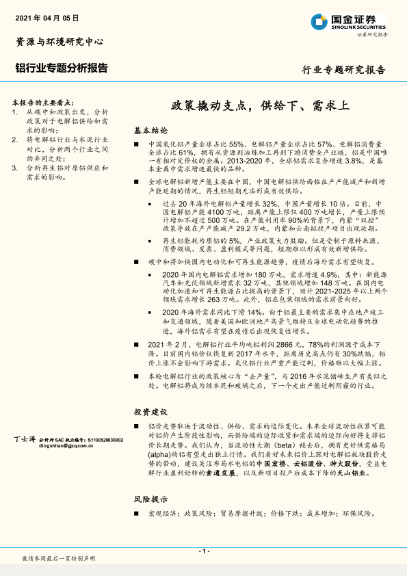 【国金证券】【20210405】20210405-国金证券-铝行业专题发展报告:政策撬动支点,供给下、需求上-27页