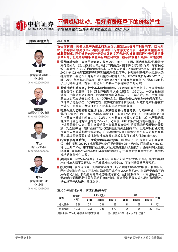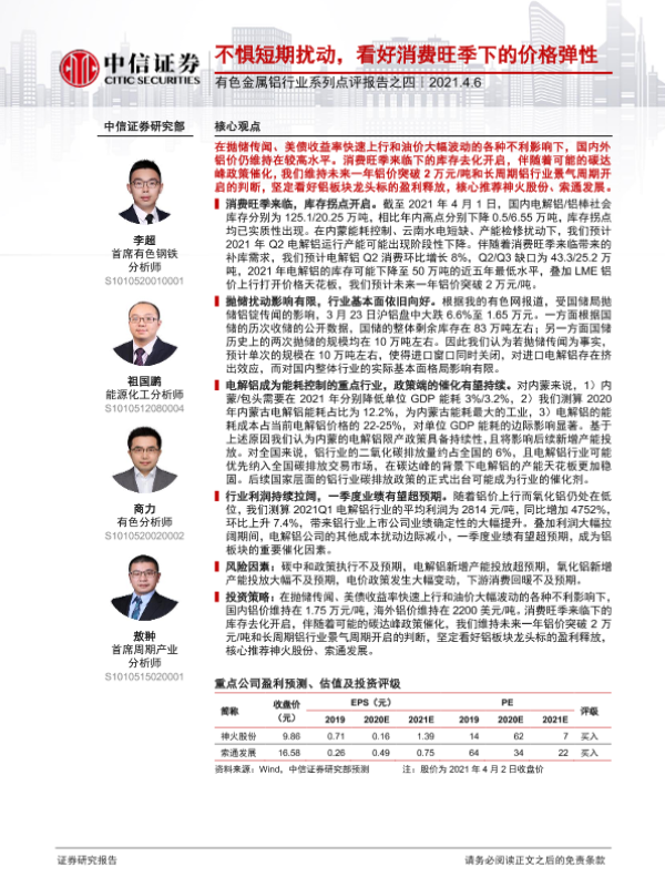 【中信证券】【20210406】20210406-中信证券-有色金属铝行业系列点评报告之四:不惧短期扰动,看好消费旺季下的价格弹性-2页