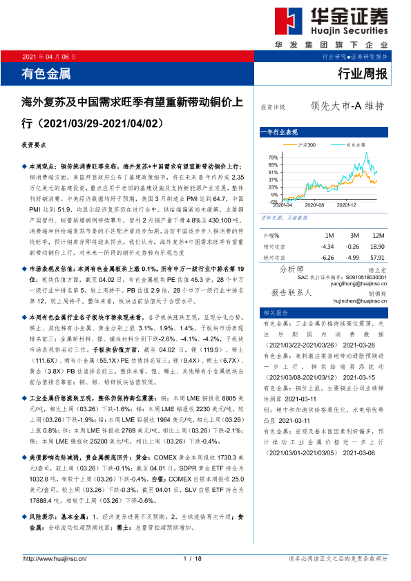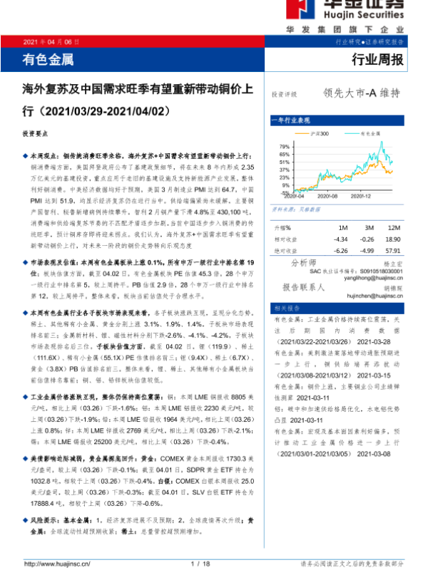 【华金证券】【20210406】20210406-华金证券-有色金属行业周报:海外复苏及中国需求旺季有望重新带动铜价上行-18页
