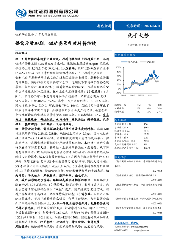 【东北证券】【20210411】20210411-东北证券-有色行业周报:供需矛盾加剧,锂矿高景气度料将持续-14页