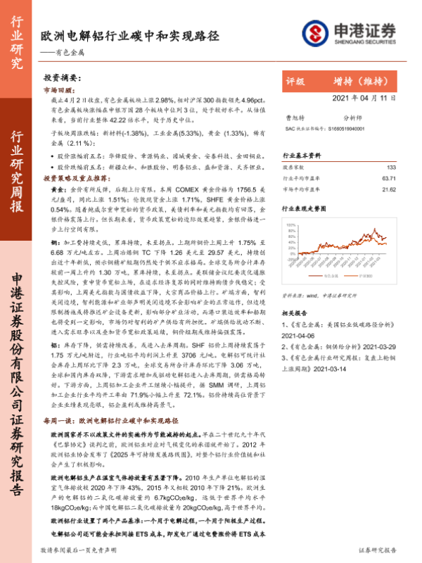 【申港证券】【20210411】20210411-申港证券-有色金属行业研究周报:欧洲电解铝行业碳中和实现路径-10页