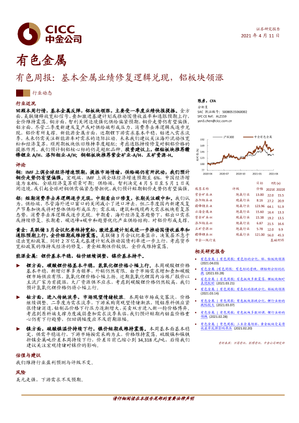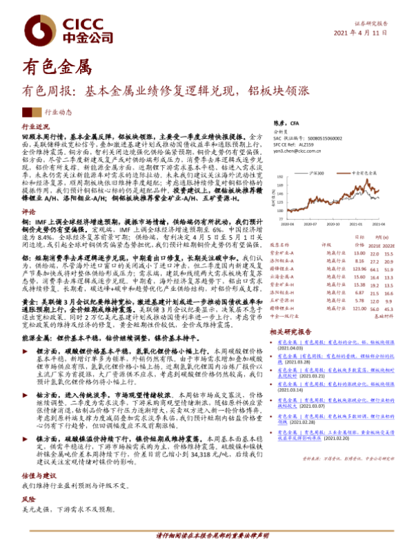 【中金公司】【20210411】有色周报:基本金属业绩修复逻辑兑现,铝板块领涨-30页
