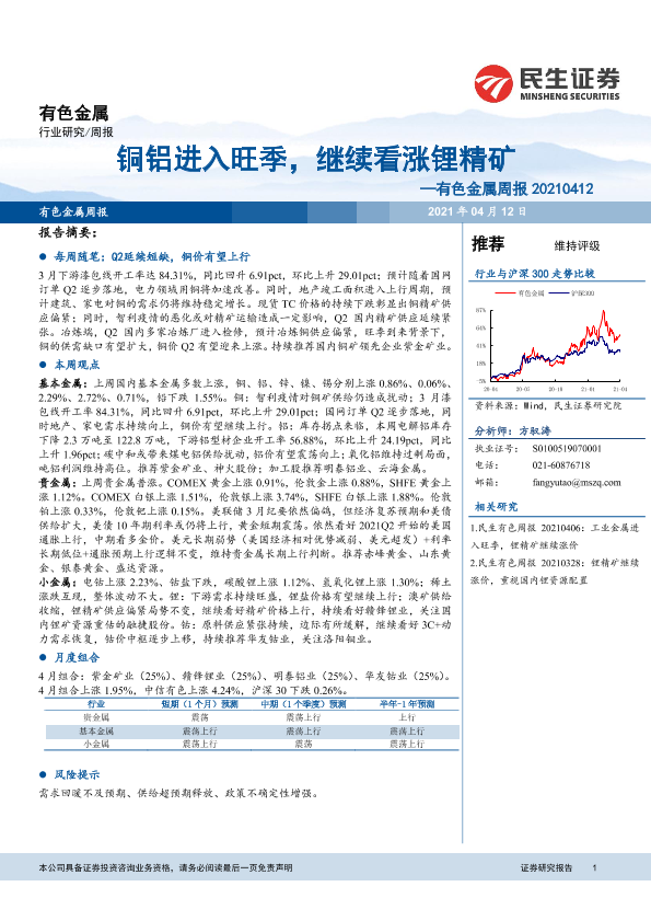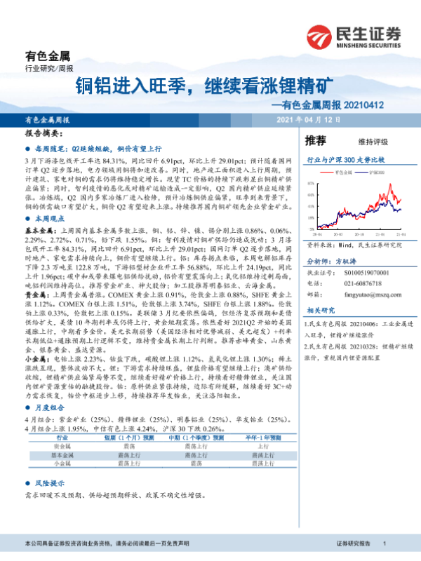 【民生证券】【20210412】20210412-民生证券-有色金属周报:铜铝进入旺季,继续看涨锂精矿-18页