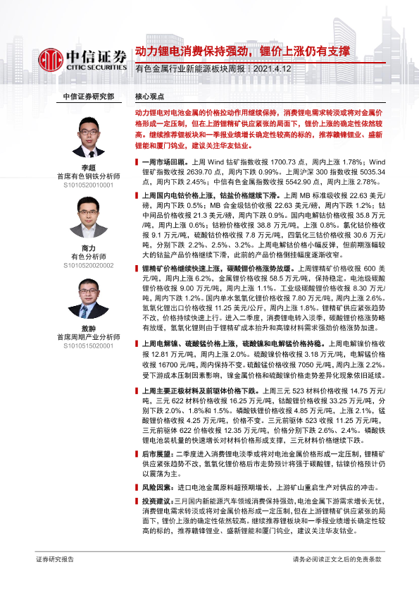 【中信证券】【20210412】20210412-中信证券-有色金属行业新能源板块周报:动力锂电消费保持强劲,锂价上涨仍有支撑-15页