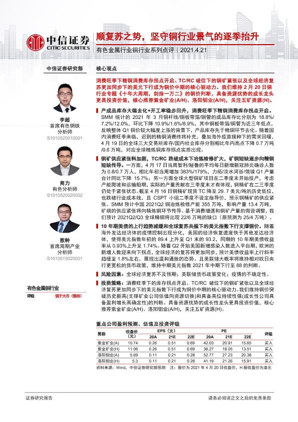 【中信证券】【20210421】顺复苏之势,坚守铜行业景气的逐季抬升-2页