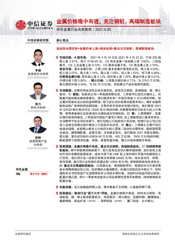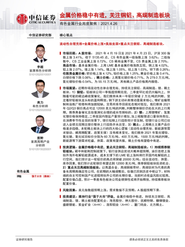 【中信证券】【20210426】20210426-中信证券-有色金属行业周度聚焦:金属价格稳中有进,关注铜铝、高端制造板块-16页