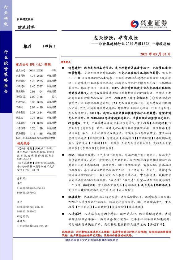【兴业证券】【20210503】龙头恒强,孕育成长——非金属建材行业2020年报&2021一季报总结-34页