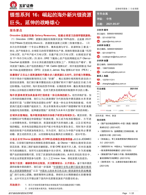 【五矿证券】【20210507】锂想系列16:崛起的海外新兴锂资源巨头,延伸的战略雄心-25页