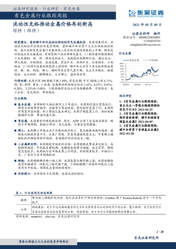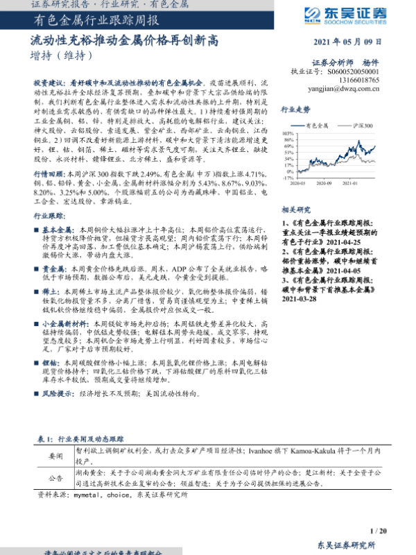 【东吴证券】【20210509】20210509-东吴证券-有色金属行业跟踪周报:流动性充裕推动金属价格再创新高-20页