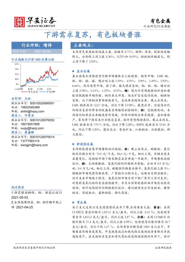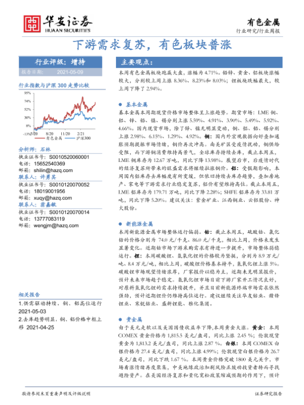 【华安证券】【20210509】20210509-华安证券-有色金属行业周报:下游需求复苏,有色板块普涨-14页
