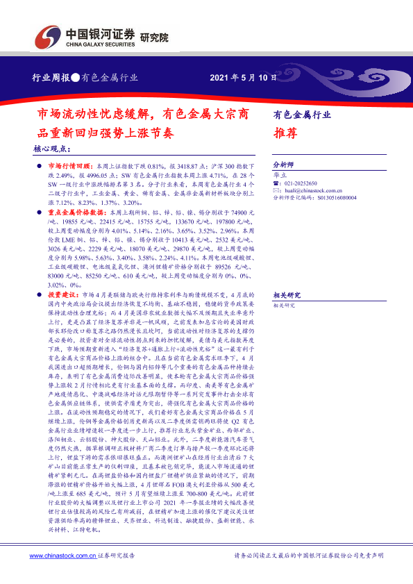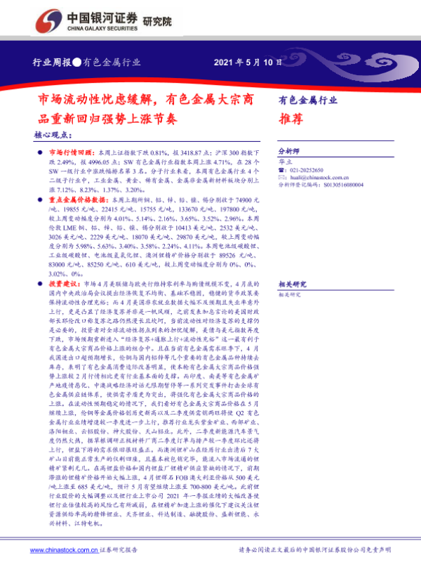【银河证券】【20210510】中国银河-有色金属行业周报:市场流动性忧虑缓解,有色金属大宗商品重新回归强势上涨节奏-19页