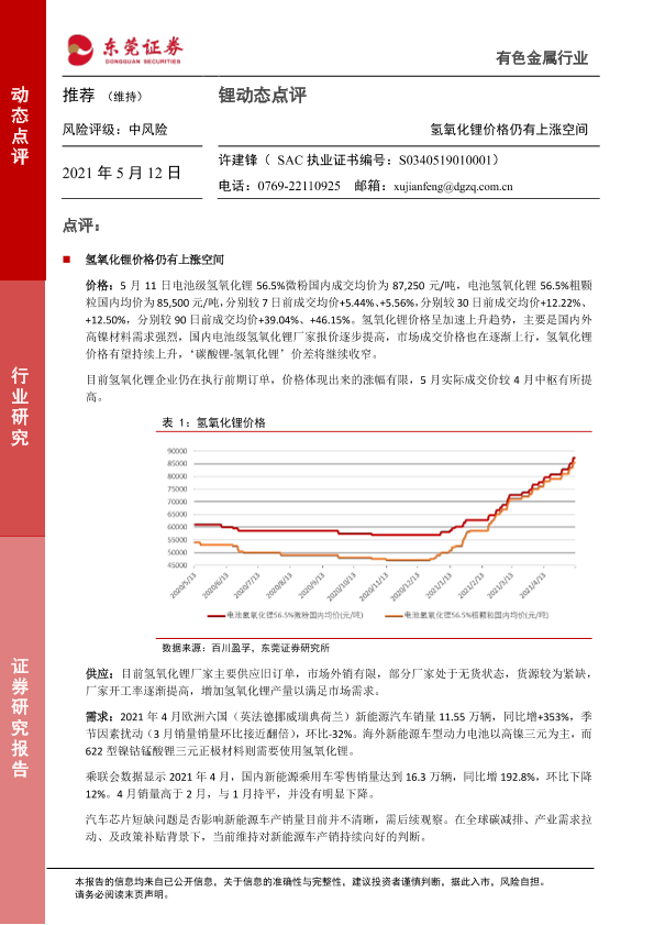 【东莞证券】【20210512】20210512-东莞证券-有色金属行业-锂动态点评:氢氧化锂价格仍有上涨空间-3页