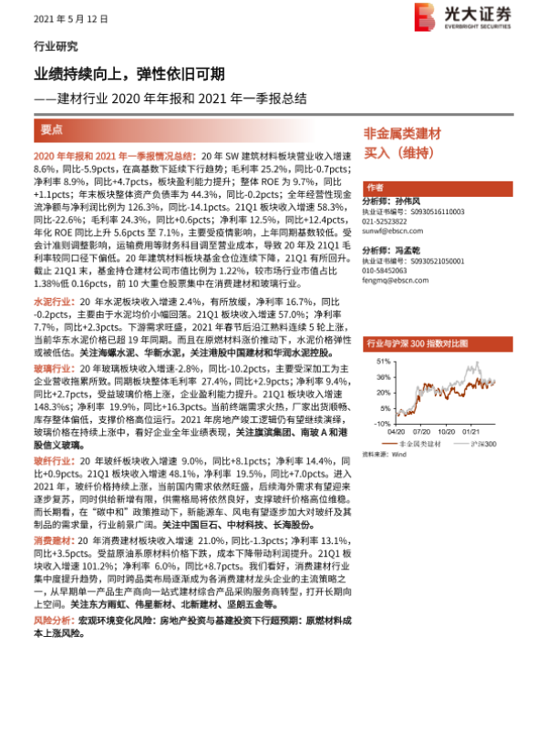 【光大证券】【20210512】建材行业2020年年报和2021年一季报总结:业绩持续向上,弹性依旧可期-20页
