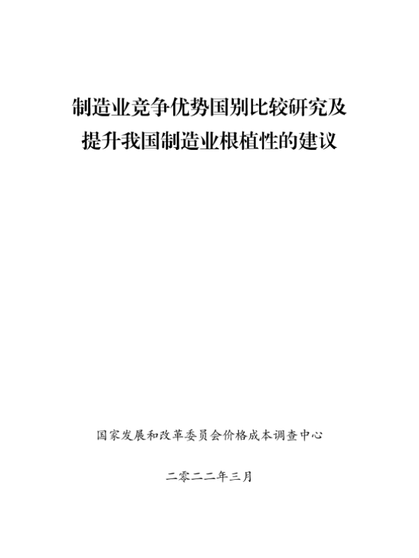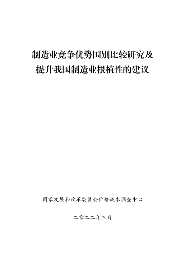 【国家发展和改革委员会价格成本调查中心】【202203】制造业竞争优势国别比较研究及提升我国制造业根植性的建议-159页