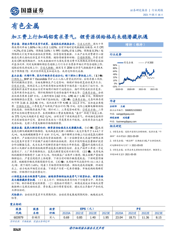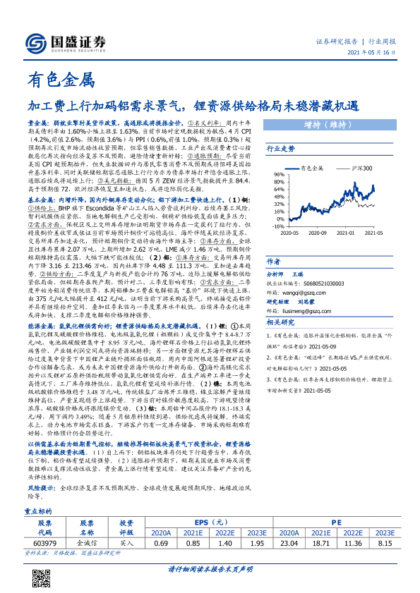 【国盛证券】【20210516】20210516-国盛证券-有色金属行业周报:加工费上行加码铝需求景气,锂资源供给格局未稳潜藏机遇-20页