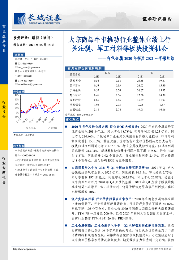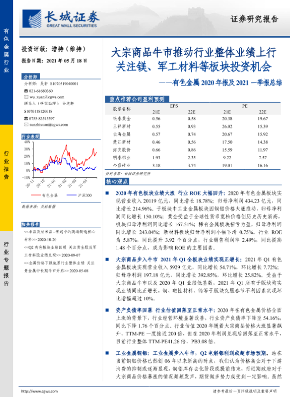 【长城证券】【20210518】20210518-长城证券-有色金属2020年报及2021一季报总结:大宗商品牛市推动行业整体业绩上行关注镁、军工材料等板块投资机会-39页