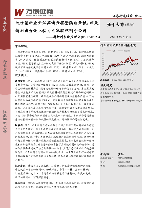 【万联证券】【20210524】改性塑料企业江苏博云将登陆创业板,回天新材出资设立动力电池胶粘剂子公司-10页