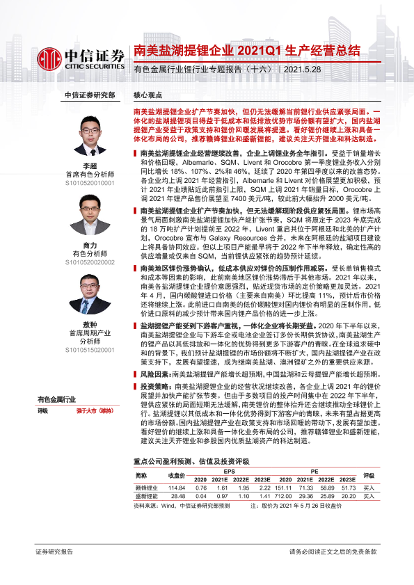 【中信证券】【20210528】南美盐湖提锂企业2021Q1生产经营总结-22页