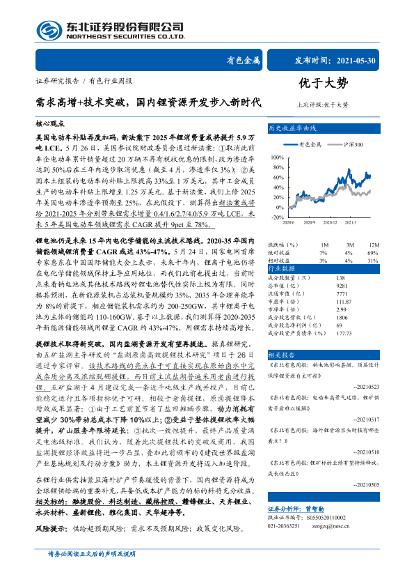 【东北证券】【20210530】20210530-东北证券-有色行业周报:需求高增+技术突破,国内锂资源开发步入新时代-16页