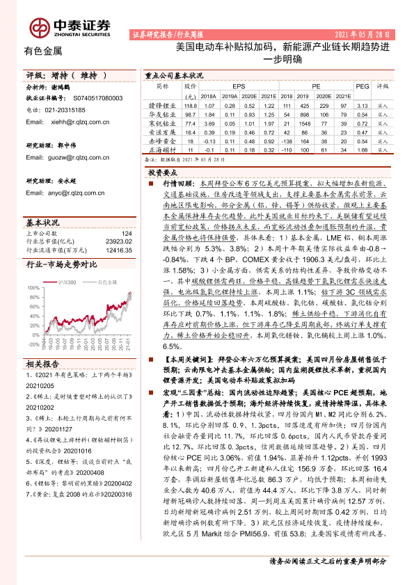【中泰证券】【20210528】中泰证券-有色金属行业周报:美国电动车补贴拟加码,新能源产业链长期趋势进一步明确-42页