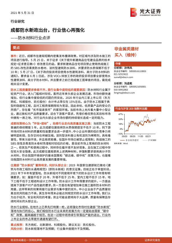 【光大证券】【20210531】防水材料行业点评:成都防水新政出台,行业信心再强化-2页