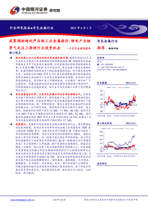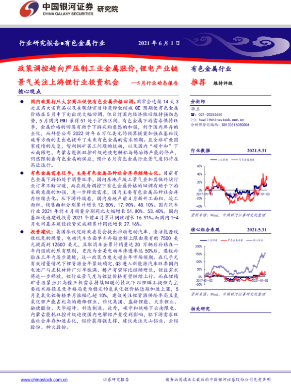 【银河证券】【20210601】政策调控趋向严压制工业金属涨价,锂电产业链景气关注上游锂行业投资机会 —5月行业动态报告-24页