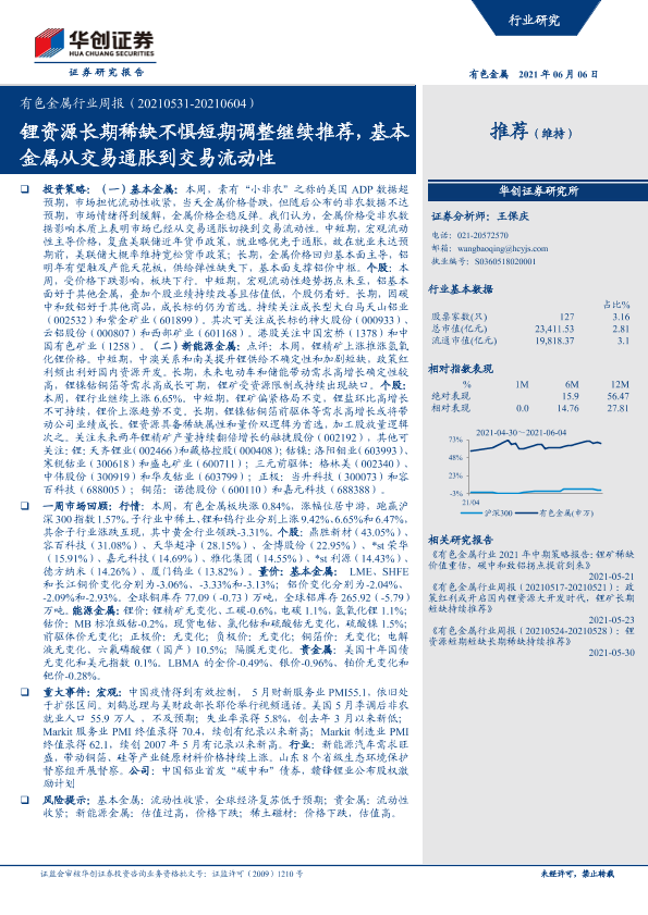 【华创证券】【20210606】20210606-华创证券-有色金属行业周报:锂资源长期稀缺不惧短期调整继续推荐,基本金属从交易通胀到交易流动性-17页