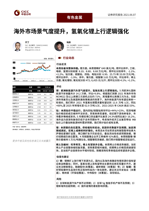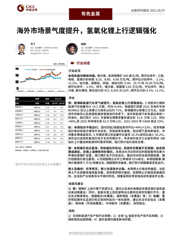 【中金公司】【20210607】有色金属:海外市场景气度提升,氢氧化锂上行逻辑强化-30页