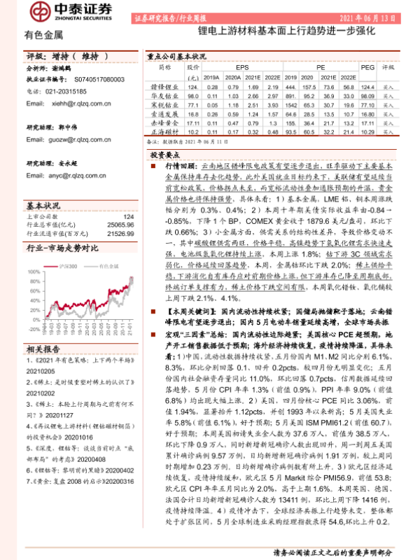 【中泰证券】【20210613】20210613-中泰证券-有色金属行业周报:锂电上游材料基本面上行趋势进一步强化-42页