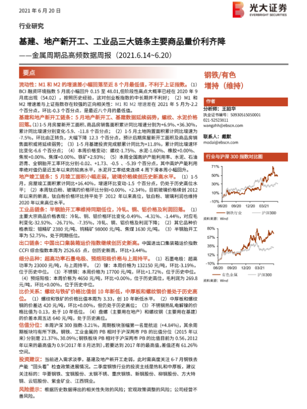 【光大证券】【20210620】金属周期品高频数据周报:基建、地产新开工、工业品三大链条主要商品量价利齐降-23页