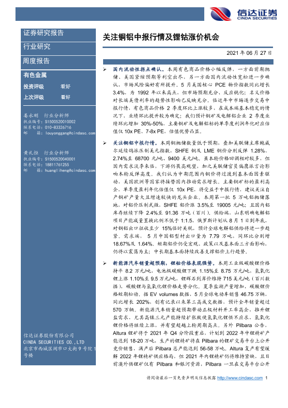 【信达证券】【20210627】20210627-信达证券-有色金属周度报告:关注铜铝中报行情及锂钴涨价机会-9页