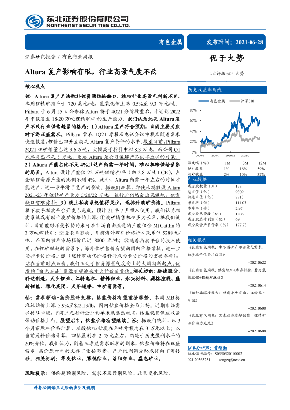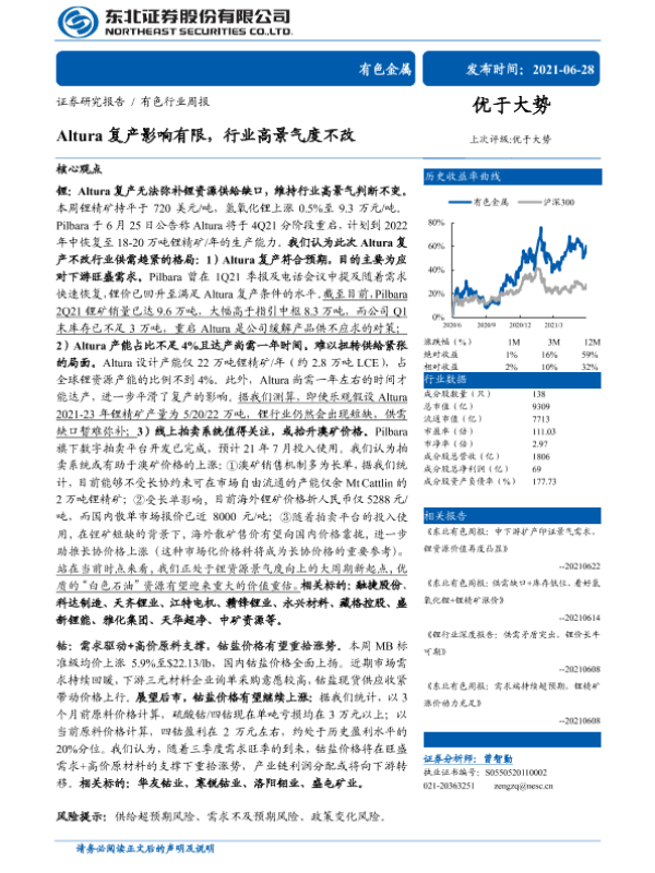 【东北证券】【20210628】20210628-东北证券-有色行业周报:Altura复产影响有限,行业高景气度不改-19页