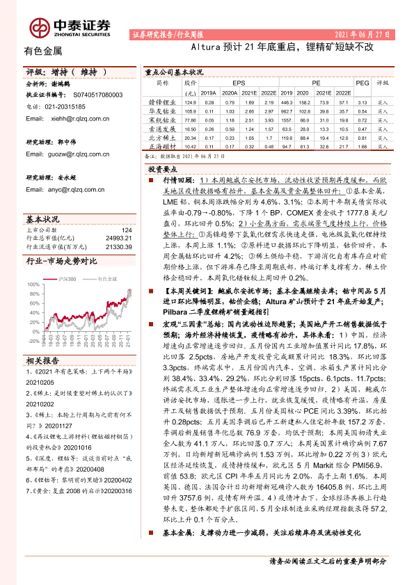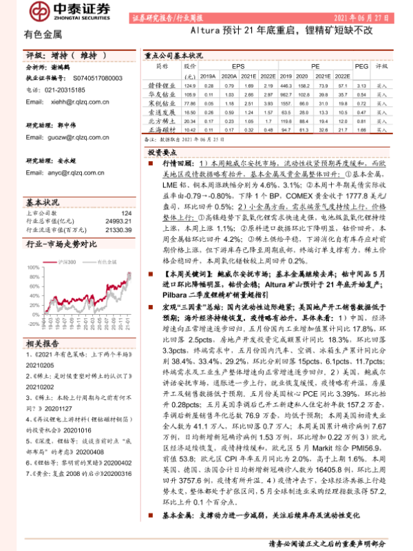 【中泰证券】【20210627】20210627-中泰证券-有色金属行业周报:Altura预计21年底重启,锂精矿短缺不改-41页