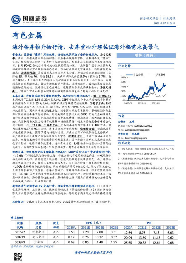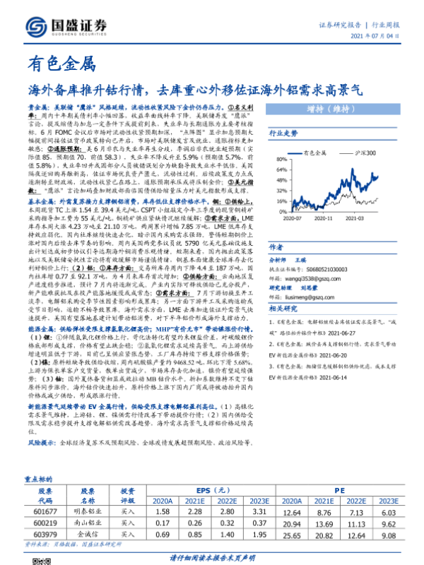 【国盛证券】【20210704】20210704-国盛证券-有色金属行业周报:海外备库推升钴行情,去库重心外移佐证海外铝需求高景气-20页
