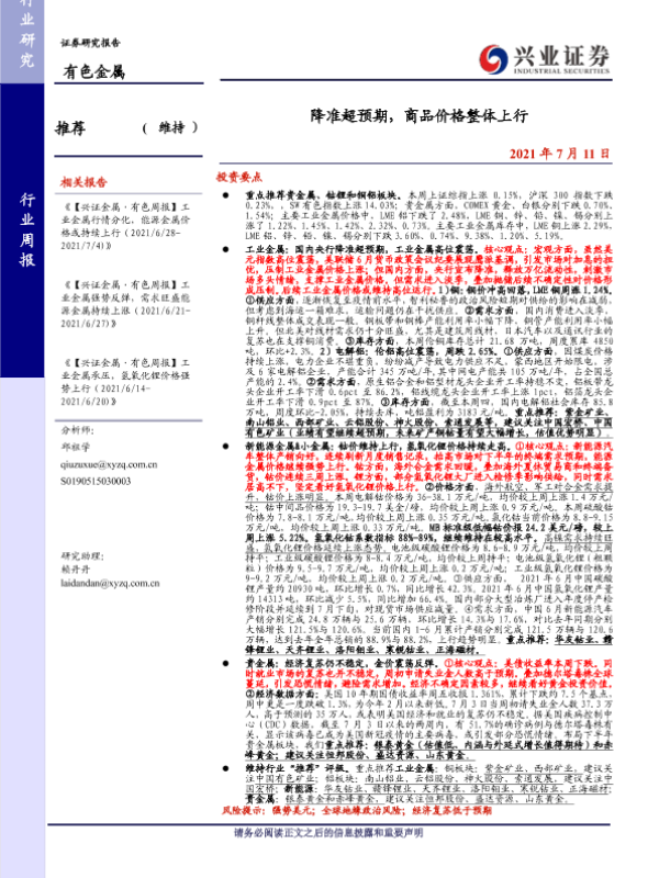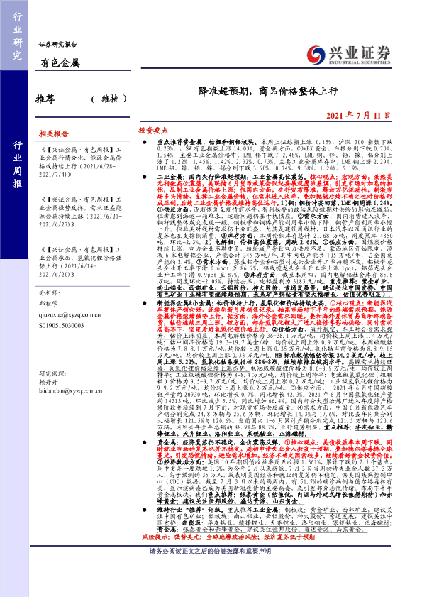 【兴业证券】【20210711】20210711-兴业证券-有色金属行业周报:降准超预期,商品价格整体上行-23页