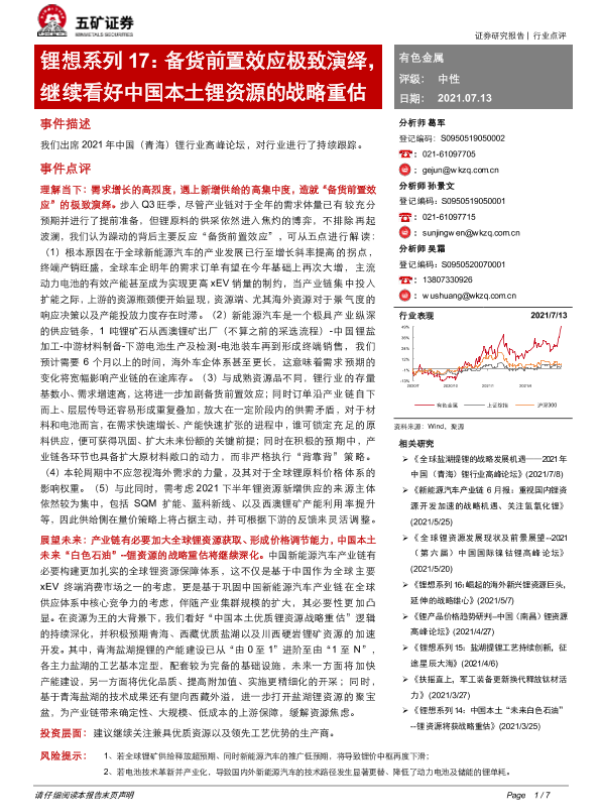 【五矿证券】【20210713】锂想系列17:备货前置效应极致演绎,继续看好中国本土锂资源的战略重估-7页