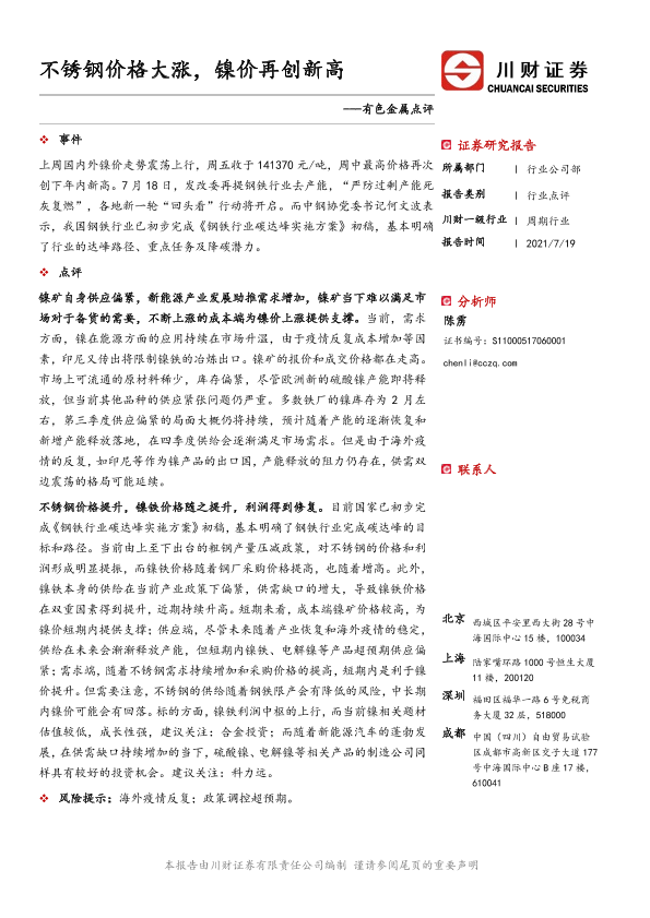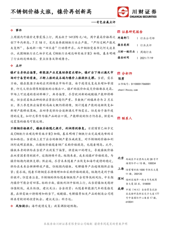 【川财证券】【20210719】不锈钢价格大涨,镍价再创新高-2页