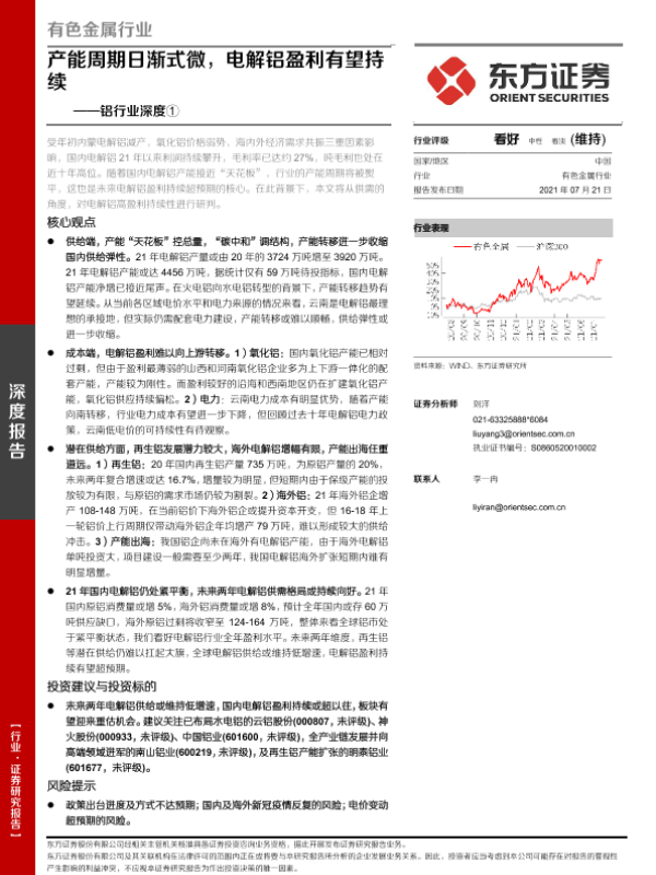 【东方证券】【20210721】铝行业深度①:能周期日渐式微,电解铝盈利有望持续-34页
