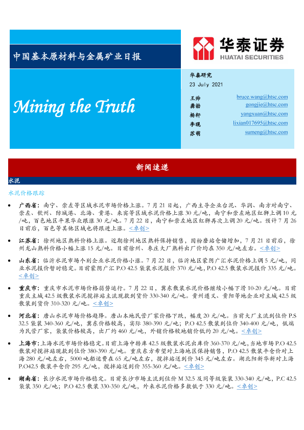 【华泰证券】【20210723】中国基本原材料与金属矿业日报-13页