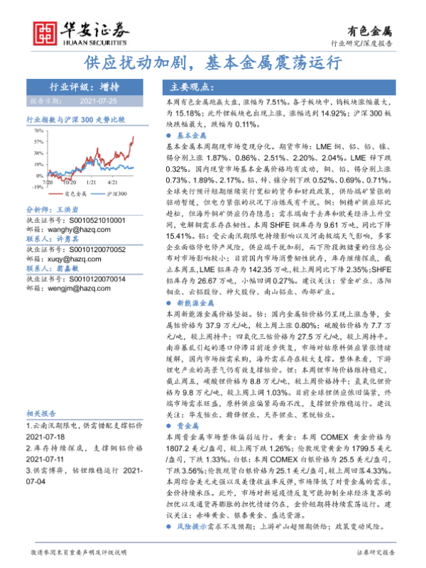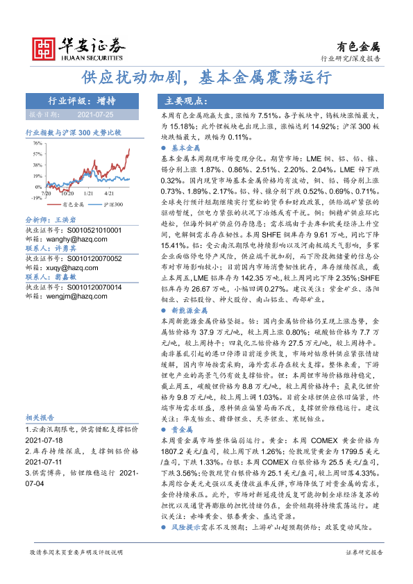 【华安证券】【20210725】有色金属:供应扰动加剧,基本金属震荡运行-13页