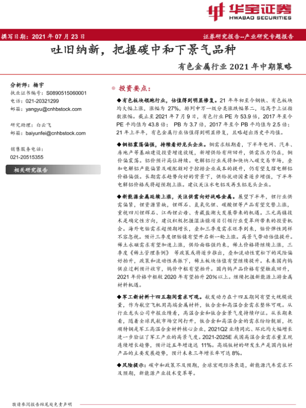 【华宝证券】【20210723】有色金属行业2021年中期策略:吐旧纳新,把握碳中和下景气品种-42页