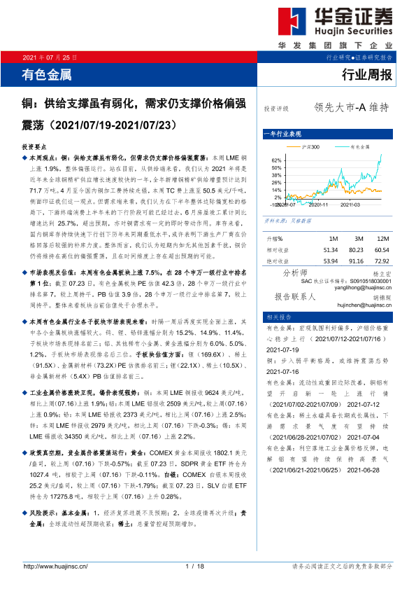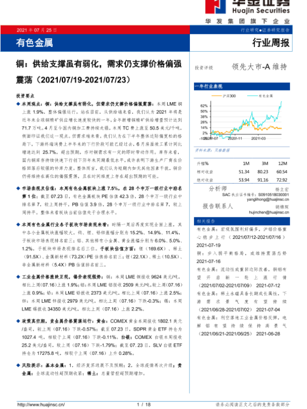 【华金证券】【20210725】铜:供给支撑虽有弱化,需求仍支撑价格偏强震荡-18页