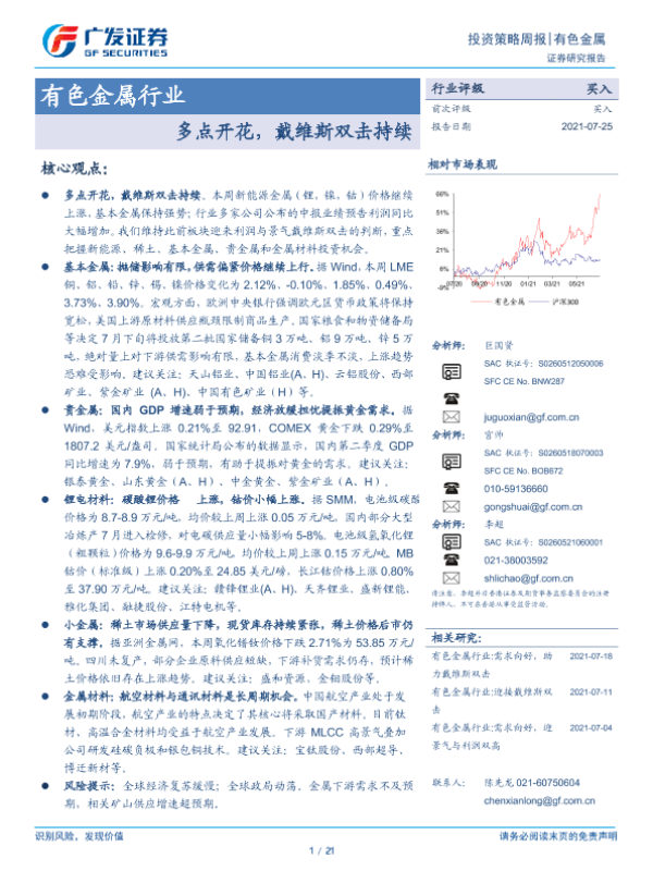 【广发证券】【20210725】20210725-广发证券-有色金属行业投资策略周报:多点开花,戴维斯双击持续-21页