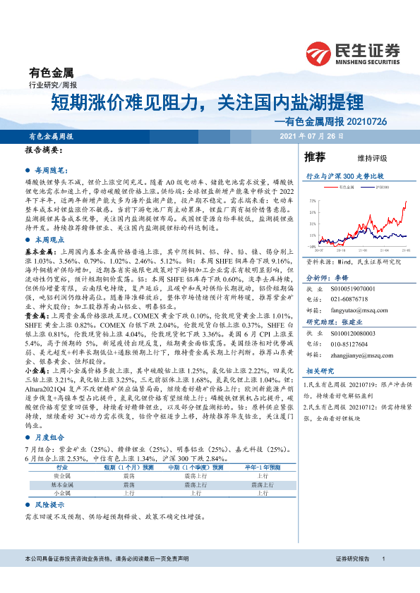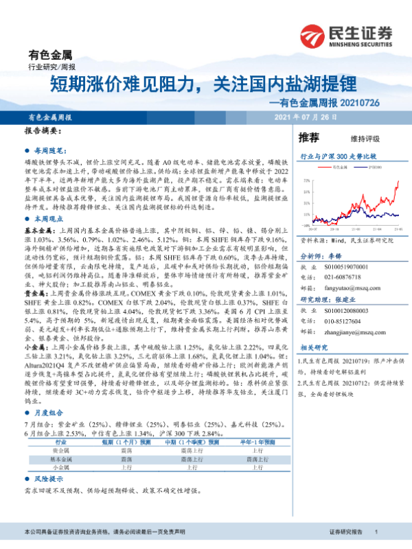 【民生证券】【20210726】20210726-民生证券-有色金属周报:短期涨价难见阻力,关注国内盐湖提锂-19页