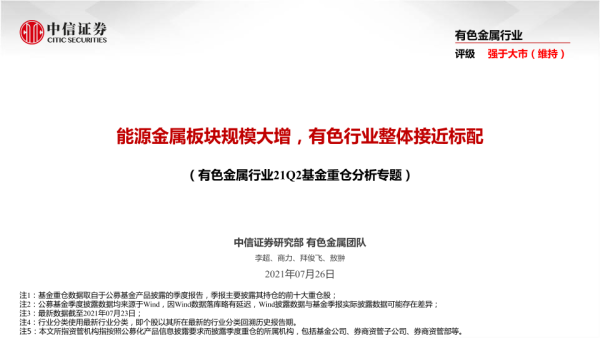 【中信证券】【20210726】20210726-中信证券-有色金属行业21Q2基金重仓分析专题:能源金属板块规模大增,有色行业整体接近标配-17页