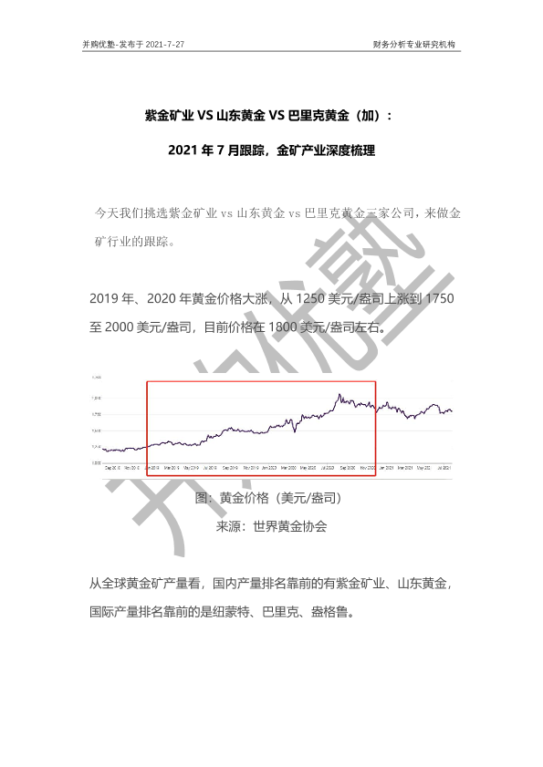 【并购优塾】【20210727】2021年7月跟踪,金矿产业深度梳理:紫金矿业VS山东黄金VS巴里克黄金(加)-24页