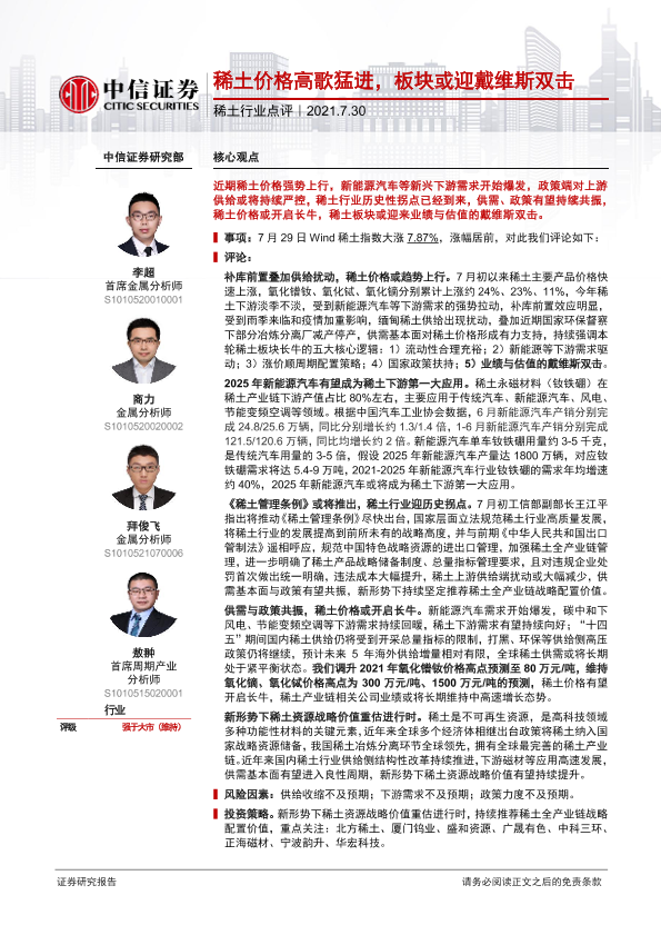 【中信证券】【20210730】稀土行业点评:稀土价格高歌猛进,板块或迎戴维斯双击-2页