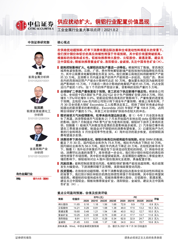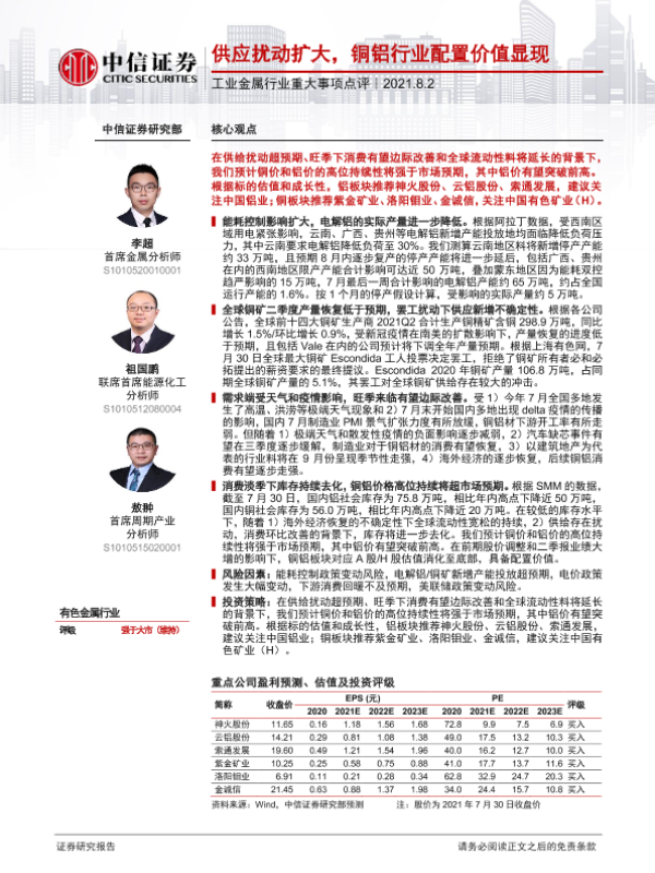 【中信证券】【20210802】工业金属行业重大事项点评:供应扰动扩大,铜铝行业配置价值显现-3页