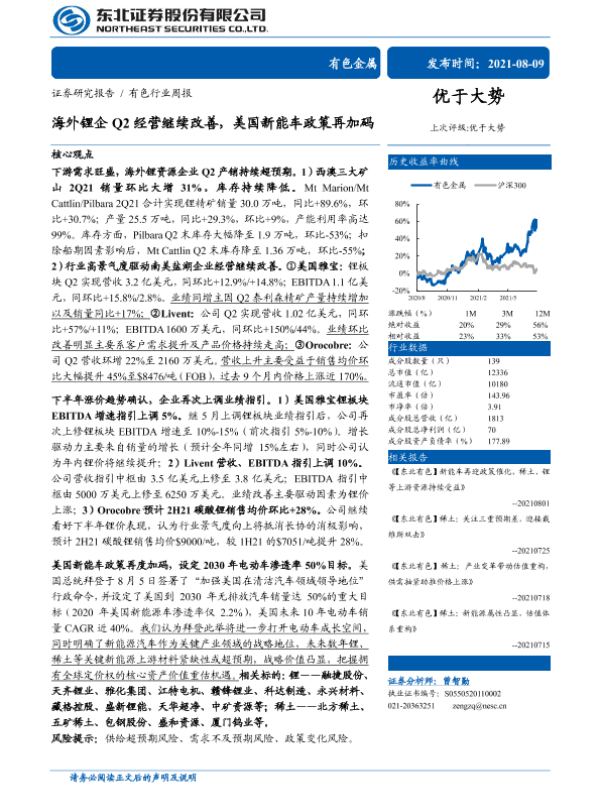 【东北证券】【20210809】20210809-东北证券-有色行业周报:海外锂企Q2经营继续改善,美国新能车政策再加码-19页